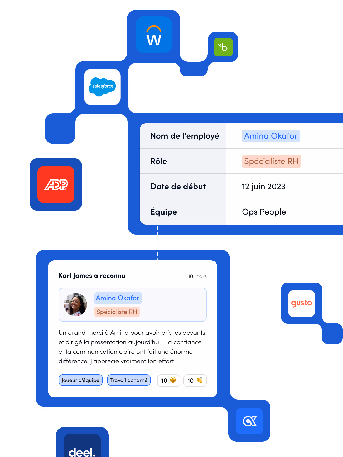 Les intégrations Awardco ont quelque chose pour chaque équipe, permettant aux gens de rester connectés, récompensés et engagés.
